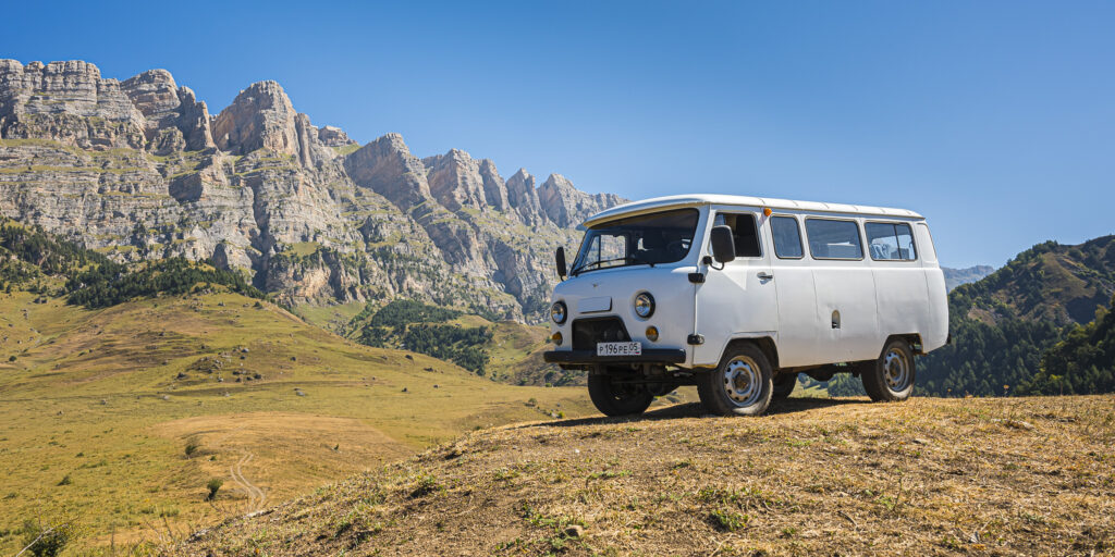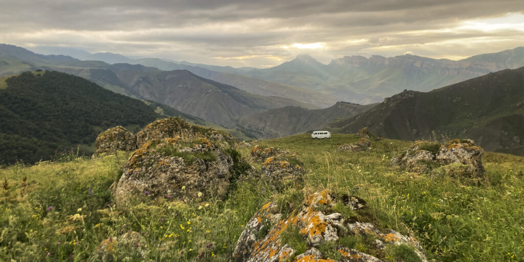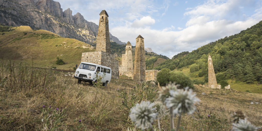 Wir sind unterwegs in den Republiken Inguschetien, Nordossetien-Alanien, Kabardino-Balkarien und Karatschai-Tscherkessien. Noch nie gehört? Ich auch nicht. Zumindest nicht, bis uns Andreas von UAZ Family vorgeschlagen hatte, diese Region mit einem ihrer Fahrzeuge zu erkunden. Vor einigen Jahren waren wir mit dem selben Bus bereits in Dagestan und hatten Land und Leute lieben gelernt (hier geht’s zum Dagestan-Video) – Grund genug ins Blaue hinein zuzusagen.