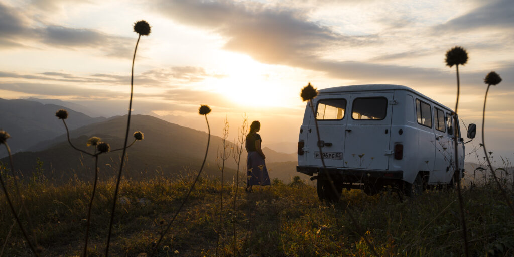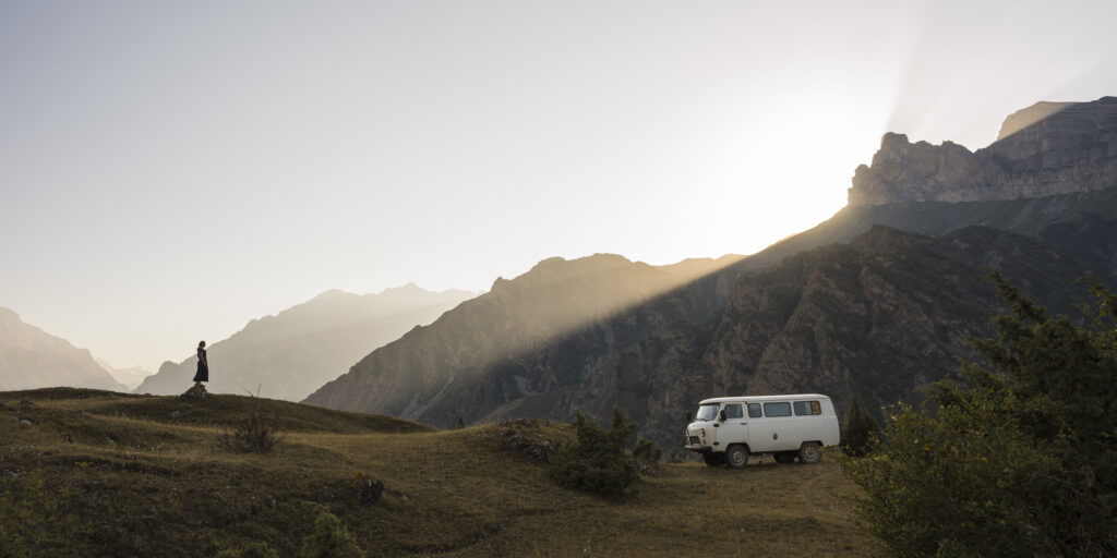 Im Buchanka ging es 2000 Kilometer teils über Stock und Stein, Abhänge hinauf und hinab, durch Matsch und Geröll. Bequem ist das nicht. Komfort sucht man bei dem russischen Kleinbus vergebens, aber dafür macht er all das problemlos mit. Bleibt weder stecken, noch sitzt er dank großer Bodenfreiheit auf und ist wendig genug für die kleinen Passstraßen und Kurven im Kaukasus. Innen praktisch zum Campingmobil ausgebaut, diente er uns als gemütliche Zuhause, ob im warmen Flachland oder im kühlen Hochland auf über 2000m.
